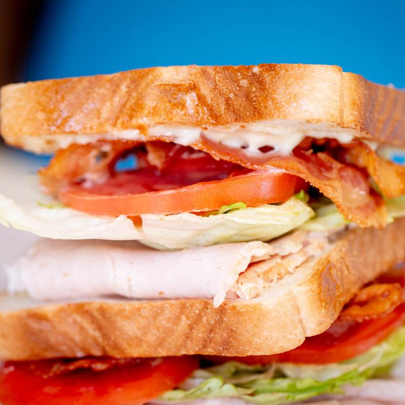 Served on white or wheat toast with crisp bacon, lettuce, ripe tomatoes, and mayo. Served with choice of French fries or onion rings.